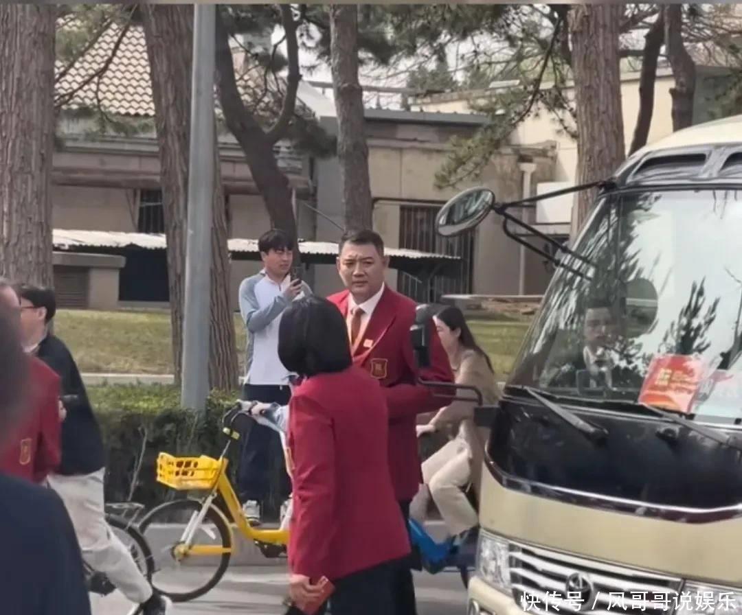 第一次是在专车到达清华大学,李昕和女篮功勋教练陈道宏先下车,巩晓彬“磨磨唧唧”地走在后面。他知道下车后媒体记者,这么多人都拍着呢。